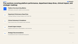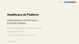 Deck · 15 slidesHealthcare AI Platform — Performance & Growth AnalysisBoard-level analysis covering ARR trajectory, departmental performance, clinical outcomes, and growth strategy across 6 clinical departments.Download PPTX freeGenerate a deck like this →